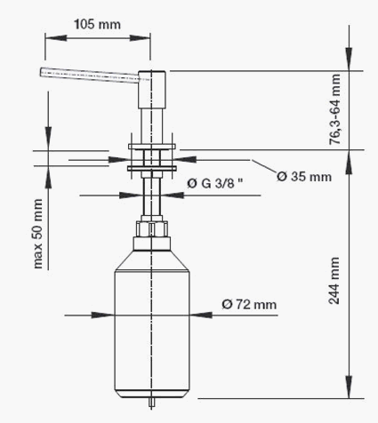 Sæbedispenser, der passer til SteelArt-serien. Designet med de afrundede hjørner passer til Claron køkkenvaskenes design.