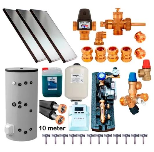 Solvarmeanlæg - Pakke 3 Pakke med alle nødvendige dele til et solvarmeanlæg. Skal blot samles og monteres. Denne pakke indeholder: