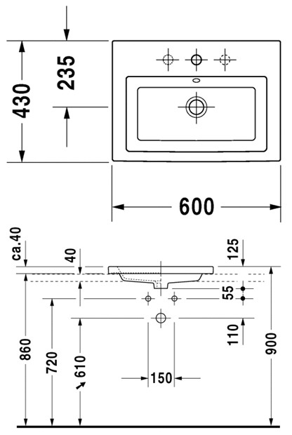 Duravit 2nd floor 60 håndvask t/nedfældning Denne Duravit 2nd floor håndvask er minimalistisk i sit design og dermed tidløs. Der er god afsætningsplads på begge sider af armaturet. Inkl. overløb og overløbsring i krom.