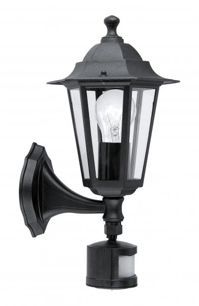 EGLO LATERNA 4 UDENDØRS VÆG SENSOR SORT ; MÅL: L:165 H:425 D:235 ; FATNING: E27 ; MAX WATT: 1 X 60W ; EKSKL. LYSKILDE