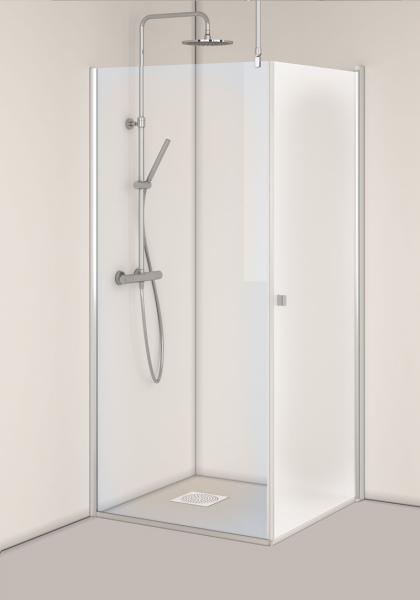Fast brusevæg: 70 cm Den svingbare dør er i frostet glas. Brusehjørne: Brusehjørne med en svingbar lige brusevæg og en fast brusevæg. Brusestangen kan monteres på tre måder: på væggen, i loftet eller vinkelret på samme væg, hvor bruseren monteres. Brusehjørnet er monteringsvenligt og har limbare profiler i aluminium. Nemt at installere og justere for én person, InstaQuick™. Henholdsvis 6 mm og 8 mm hærdet sikkerhedsglas. Vendbare brusevægge, som alle kan kombineres med hinanden. 8 mm frihøjde fra gulvet. Højde 2000 mm. Kan monteres med udvendige 12-mm-rør, cc 35 mm. Der fås en forlængelsesprofil til udvendige rør. 18 mm glideskinne medfølger.