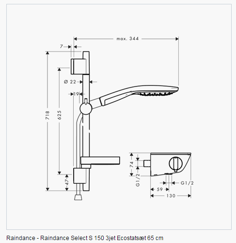 Raindance Select 150 brusesæt og Alt er med og klar til montering. |