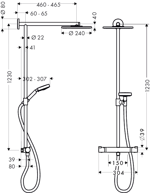 Hele kroppen indhylles i vand fra den store hovedbruser, håndbruserens tre stråler giver målrettet nydelse, og den skoldningssikrede termostats moderne design lader dig betjene din bruserfornøjelse med stor komfort. Og så er Hansgrohes Raindance Showerpipe 240 oven i købet let at holde ren pga. begge bruseres QuickClean antikalk-funktion og den glatte, rengøringsvenlige bruserslange. Bestående af: Raindance AIR hovedbruser Ø 240 mm, Raindance S 100 AIR 3jet håndbruser med normal-, massage- og kombinationsstråle samt Ecostat Comfort termostatarmatur med sikkerhedsspærre og vandsparefunktion. Inklusive bruserholder, Isiflex bruserslange og 120 cm stigerør, der kan afkortes efter behov.
