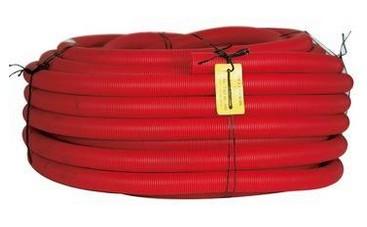 Hekaplast rød, indvendig glat og udvendig korrugeret PEH-rør, anvendes som trækrør til kabler primært nedgravet i jord. Leveres med træksnor og muffe.