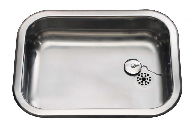 Køkkenvask til underlimning. Leveres med prop og overløb.