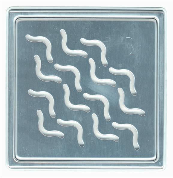 Design rist og ramme i rustfri børstet stål. Rammen skal altid have forbindelse med gulvafløbet og fuges tæt, BRUG ALDRIG SILICONE