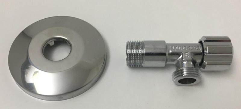 Stopventil i krom. Længde 45mm. Anvendes ved vandtilslutning til toiletter ved installation i væg. Inklusiv roset. Husk pakgarn og paksalve ved montering i væg.