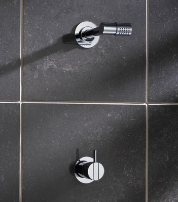 Et-grebsblander med keramisk ventilenhed 200, 115 mm hovedbruser 080, 1 stk. 60 mm dækrosetter 001, 1 stk. 60 mm dækrosetter 3001.