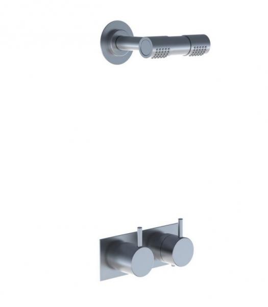 Vola Indbygningstermostat med løs afgangsmuffe Dobbelt hovedbruser, 115 mm Krom 16 3/4''RG/PEX |